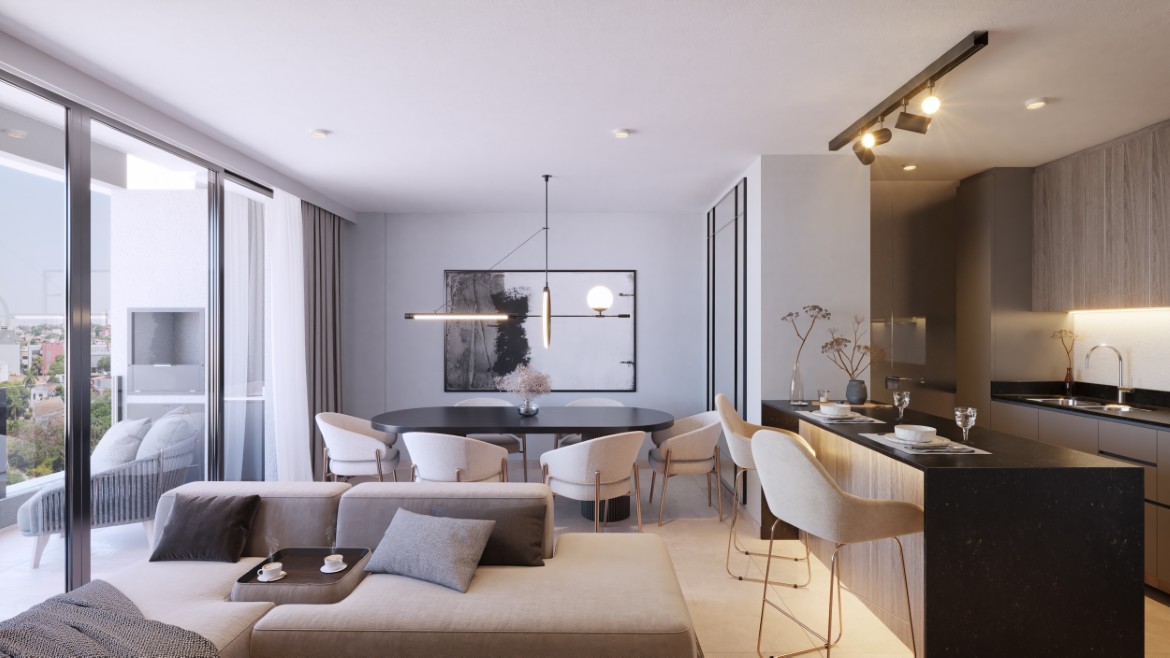 Edificio de 54 departamentos en 6 niveles, en el barrio Bella Vista a 1 cuadra del club Centenario. Con terminaciones de primer nivel.